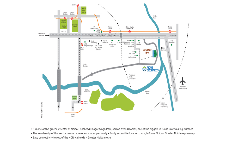ATS Pious Orchards boasts strategic location advantages. Situated conveniently, it provides easy access to schools, hospitals, and key facilities. The surrounding area is well-connected, enhancing daily convenience for residents. The location is chosen for its proximity to essential services, making life hassle-free. Additionally, the project is surrounded by greenery, offering a peaceful and refreshing atmosphere. This strategic positioning ensures a balanced lifestyle, with nature and urban necessities within reach. ATS Pious Orchards' location advantages make it an appealing choice for those seeking a well-connected and harmonious living environment in a thriving community.